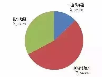 超过八成的海归回国后都能实现再融入。渐渐地融入是主要类型,占54.4%,较快地融入的占32.7%。一直很难融入的占12.9%,说到融入,哥觉得,这需要充分借助社会力量积极开展文化、交流等活动,帮助海归人员更好地融入回国后的生活和工作。