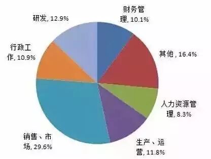 在工作岗位方面,选择销售、市场的海归最多,占29.6%,选择生产/运营,研发,行政工作,人力资源和财务管理的海归分别占11.8%、12.9%、10.9%、8.3%和10.1%。